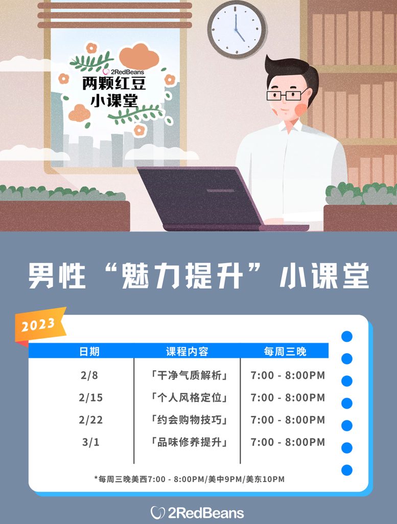**除此以外,我们还不定期开启和婚恋交友相关的专业课程,帮助大家提升交友技能。**今年2月,我们首次为男同胞们开设了「男性魅力提升」小课堂,针对在个人形象和品味修养上想进一步提高的男学员们定制了线上教学小班课程。