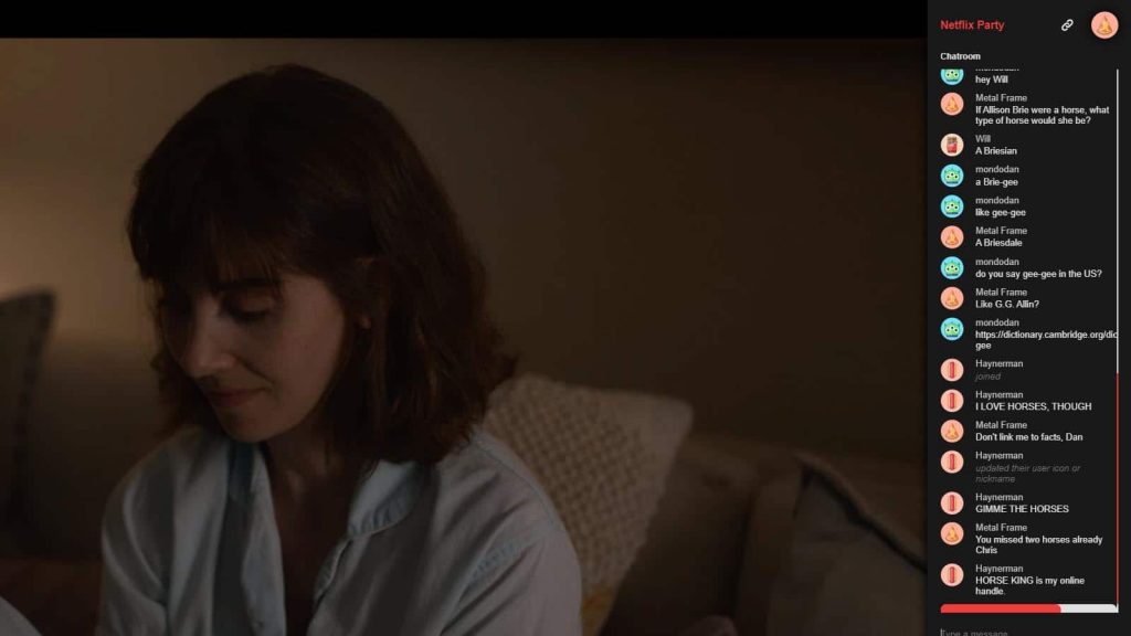 Netflix Party是Google Chrome的一个扩展程序,安装之后邀请Ta加入,你们就可以共享一部Netflix影片了,画面右侧会出现你们专属的聊天室,还可任意修改聊天室的名字和主题,你们可以随时讨论剧情、交换感受,甚至是互说情话,还有比这更有趣又私密的空间吗?
