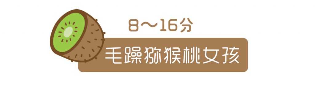 爽朗大方的猕猴桃女孩富有灵气,你可能觉得自己没有出众的样貌和身材而自暴自弃。你常常会有我行我素的时刻,在生活中不拘小节,你有自己的的兴趣爱好和独特的精神世界。你眼中的爱情是可遇不可求的,在等到之前你自己也可以过的很好。在找到对的ta之前,你需要发掘自己最独特的魅力,拉近与人的距离感,提升外在的附加分,小小的改变就能让你焕然一新。